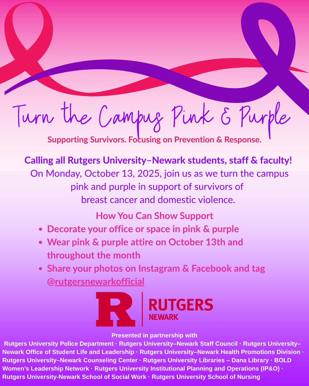 Supporting the fighters, admiring the survivors, and honoring the taken. Sunday, October 19, 2025 Check-In: 8:00 a.m. Start: 10:00 a.m. Mulberry Commons, 160-172 Mulberry Street, Newark, NJ 07102 Registration link